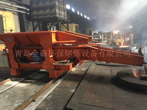 電爐加料車是專為熔煉電爐設計開發的振動加料裝置。該車采用振動加料方式,使用方便、加料平穩、可將料塊對爐體撞擊降低到最小、而且加料更符合工藝要求。電爐加料車根據行走方向不同,可以分為單向直行式、雙向直行式兩個型式。單向直行式,每臺電爐配一臺加料車。雙向直行式,一臺加料車可以滿足多臺電爐加料需要,加料車可以橫向、縱向移動。 電爐加料車技術參數